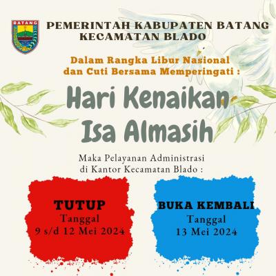 dalam rangka libur Nasional dan cuti bersama memperingati hari kenaikan Isa Al-Masih
